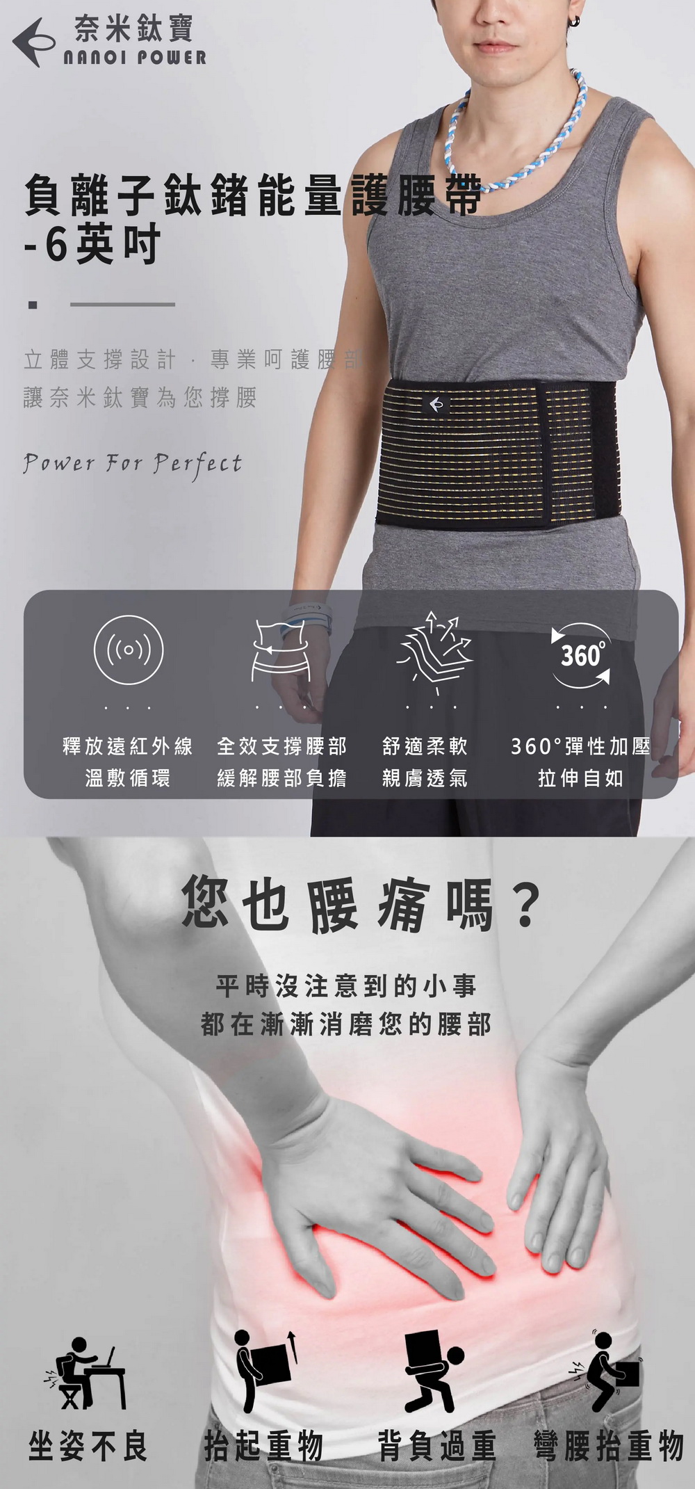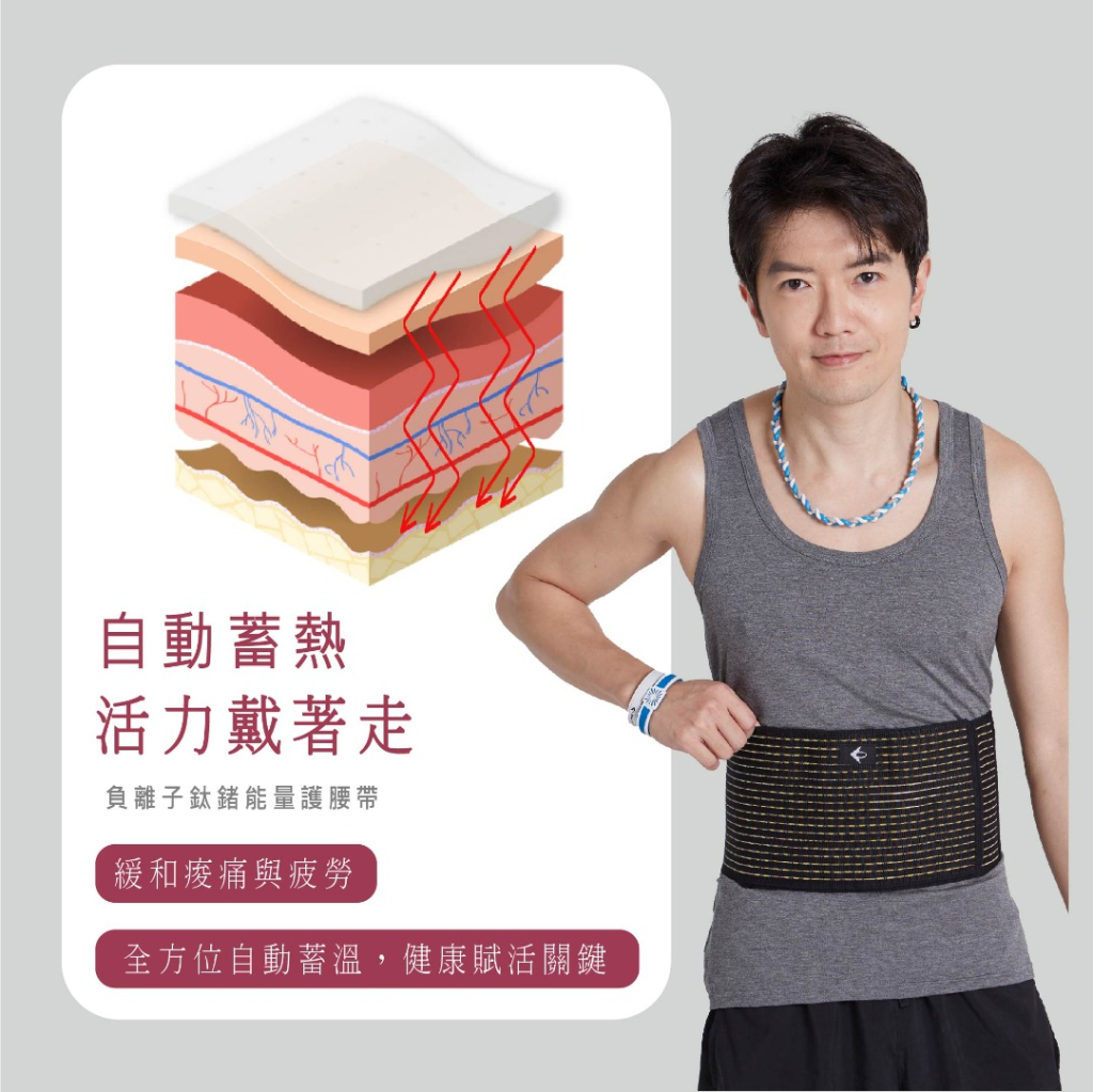 奈米鈦寶六合一能量護腰帶,溫潤貼合腰部,釋放遠紅外線與負離子能量,舒緩受傷不適,幫助放鬆緊繃肌群,促進循環,給予腰部溫暖守護,讓修復更安心、行動更自在。