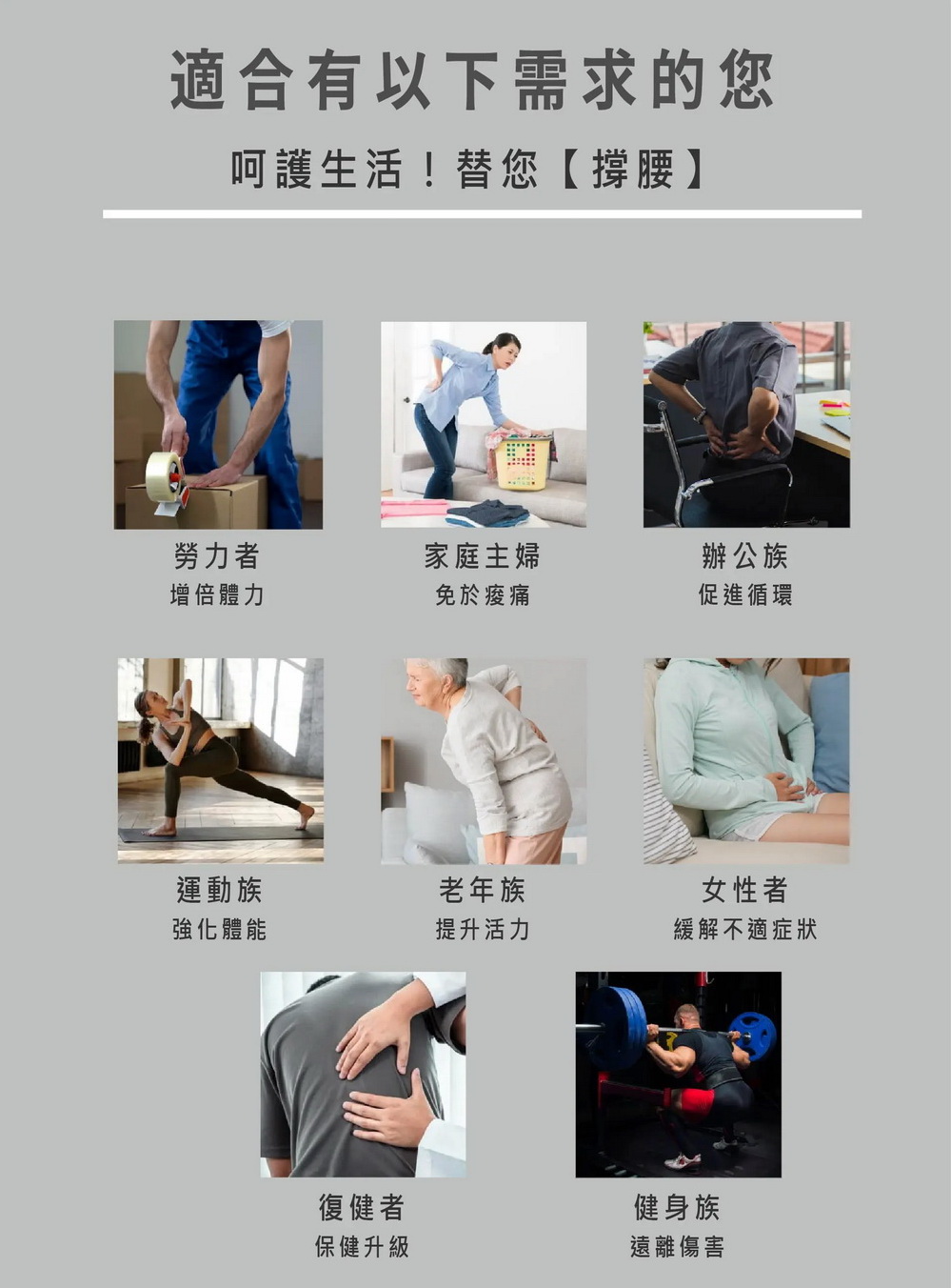 · 緩和放鬆:提升腰部的舒適度,有效舒展緊繃肌肉。